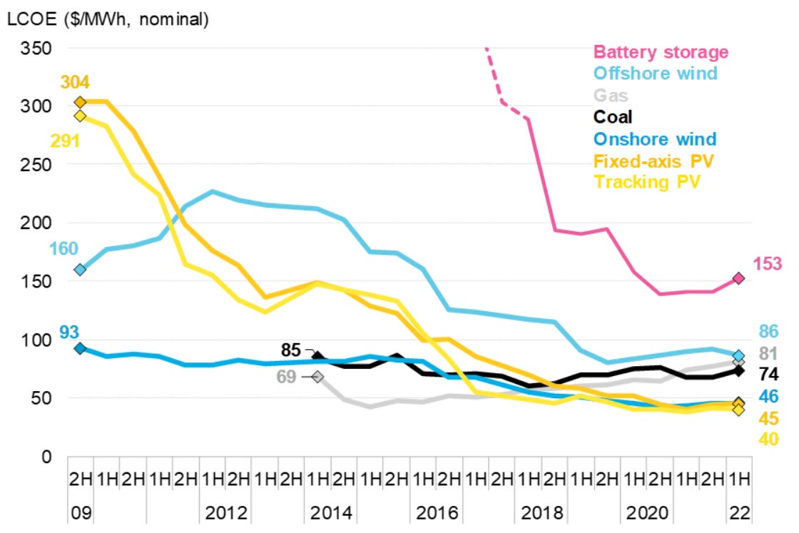 This can be seen especially through the LCOE calculations from Bloomberg: